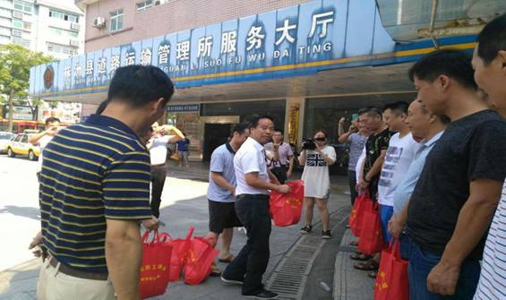 7月28日,株洲縣主管公交的副縣長(zhǎng)劉行國(guó)率縣總工會(huì)主席文偉明等領(lǐng)導(dǎo)一行,冒著高溫酷暑來到淥口客運(yùn)分公司慰問奮戰(zhàn)在生產(chǎn)一線的湘運(yùn)員工,為他們送去了綠豆、白糖、藿香正氣水等防暑降溫物品,讓他們?cè)谘籽紫娜崭惺芙z絲清涼。
